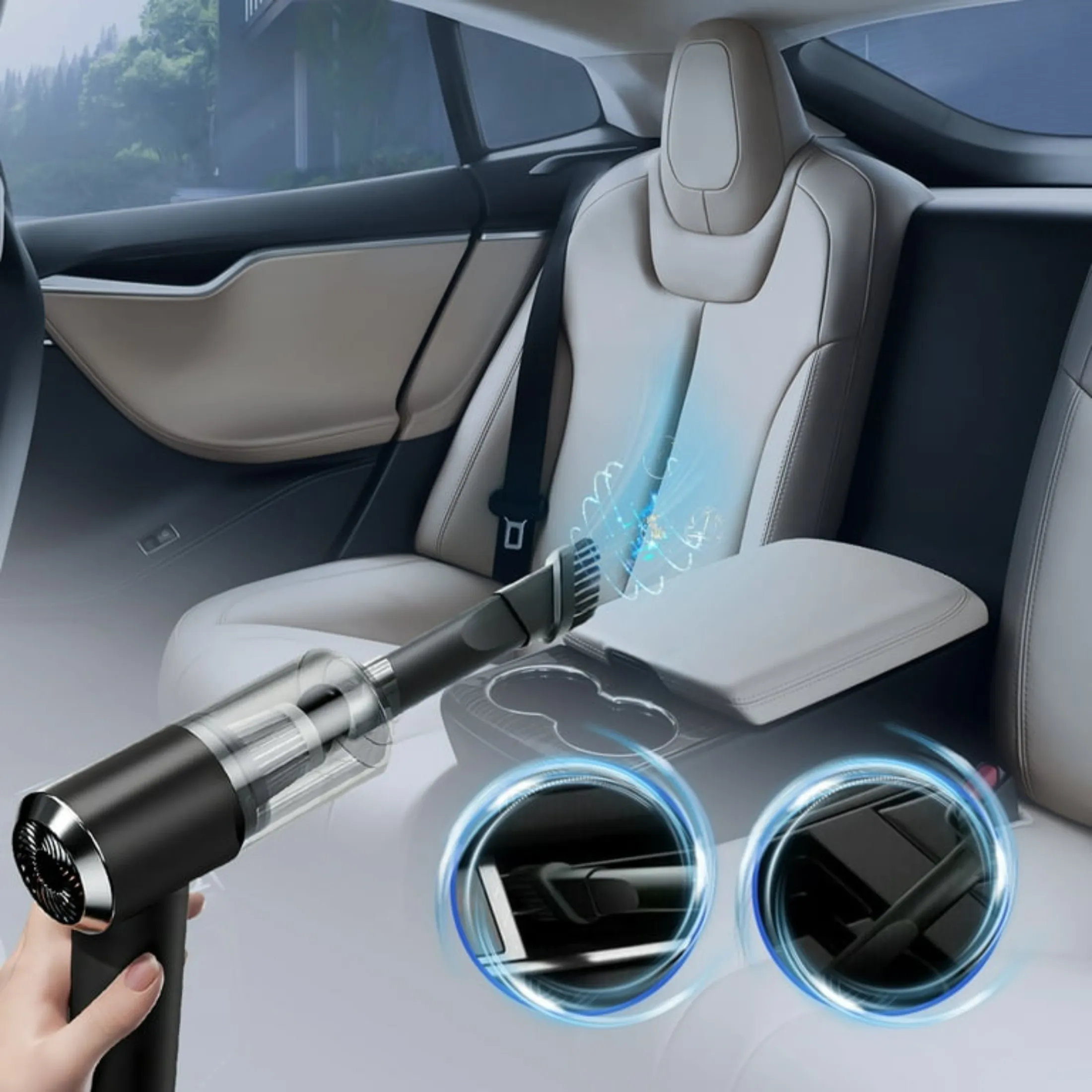 Introducing Our 3-in-1 Smart Vacuum Cleaner! It’s a versatile cleaning solution for your car’s interior. This rechargeable cleaner has triple modes, including duster, mopping, and blower. So you can clean efficiently. Plus, it’s cordless and ultra-thin, making it super convenient to use. Whether it’s wet or dry cleaning, this handheld vacuum-mop cleaner has got you covered. It’s a portable powerhouse for effortless cleaning anywhere, anytime. Our compact and durable design ensures ease of use and longevity, featuring a light yet sturdy plastic body and specialized nozzles for accurate cleaning in tight spaces. With powerful suction and a versatile design, our vacuum effortlessly collects dust and debris from every corner of your car or home, including hard-to-reach areas like car seats and deep crevices. Enjoy wireless and efficient cleaning with rechargeable convenience, supported by a power rating of 0-200W. Switch seamlessly between vacuum and blower modes for flexible cleaning, and experience quiet operation thanks to advanced silent technology. Our long-lasting battery ensures uninterrupted cleaning sessions, with the added benefit of car charging support for on-the-go cleaning. Efficient dust collection and easy maintenance are guaranteed with our cartridge filter and detachable components, while compact storage and versatile cleaning options make our 3-in-1 Vacuum Cleaner the perfect solution for all your cleaning needs. Don’t worry about safety – our car vacuum cleaner is FCC and CE certified, with the added bonus of dual functionality for blowing and sucking, making cleaning and inflating tasks a breeze. Experience the convenience and efficiency of our 3-in-1 Vacuum Cleaner, and enjoy a spotless, hassle-free home or car interior every time.